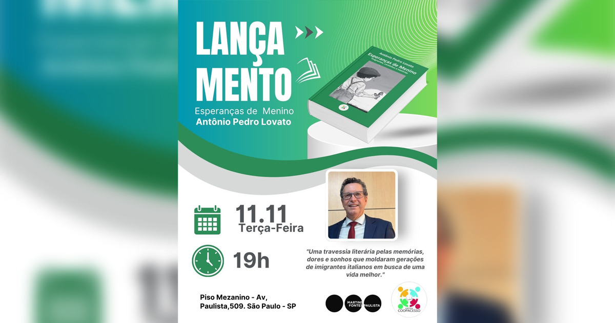 Lançamento de “Esperanças de menino – Emigrantes, caminhos e histórias”, de Antonio Pedro Lovato.