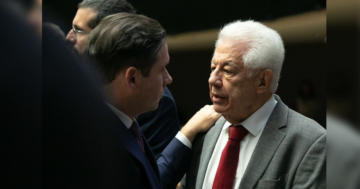 Deputado Arlindo Chinaglia com o presidente da Câmara, Hugo Motta, durante a abertura da sessão do Congresso no dia 2; após recebimento do texto pelo Congresso, Chinaglia alinha tramitação com o presidente Hugo Motta; previsão é de parecer pronto na próxima semana e votação em Plenário logo após o Carnaval