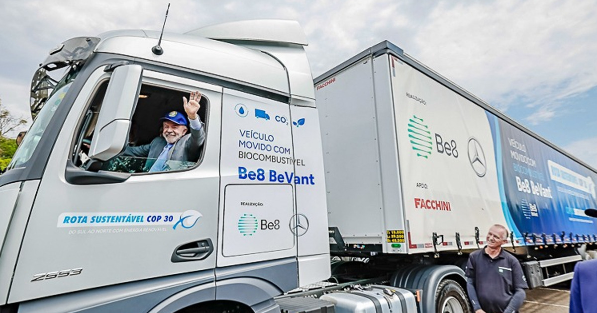 As duas empresas demonstraram a contribuição do biocombustível Be8 BeVant na redução da emissão de gases de efeito estufa (GEE) ao deslocarem dois caminhões e dois ônibus fabricados pela Mercedes por cerca de 4 mil km entre Passo Fundo e Belém, cidade-sede da COP30. Nesta quinta, os veículos foram expostos no estacionamento ao lado do Anexo do Planalto, para visitação do público.
