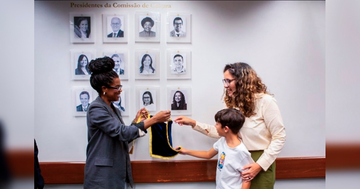 Como primeiro ato à frente da Comissão de Cultura, Carol Dartora homenageou sua antecessora com a inauguração da foto de Denise Pessôa na galeria de ex-presidentes do colegiado.