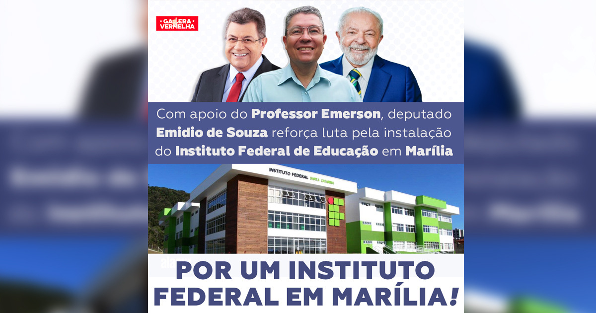 O deputado estadual Emidio de Souza (PT-SP) encaminhou ofício para a reitoria do Instituto Federal da Educação, Ciência e Tecnologia de São Paulo (IFSP) para que Marília seja contemplada com o melhor ensino profissionalizante do Brasil, através da instalação de novo campi na cidade do interior paulista.