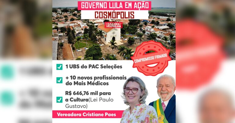 Desde o início do Governo Lula, em 2023, o município de Cosmópolis, na região de Campinas, vem sendo contemplado com vários recursos. Foram R$ 97,11 milhões para obras e serviços públicos, além de 35 novas moradias pelo Programa Minha Casa, Minha Vida e mais 3 bolsas para atletas da cidade, entre outros programas que atenderam … Continue lendo “Com o Governo Lula, Cosmópolis ‘voltou a existir’ no mapa do Brasil”, comemora a vereadora Cristiane Paes