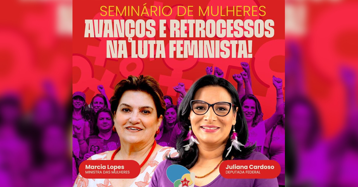 A abertura do evento será marcada por um diálogo entre a deputada Juliana Cardoso e a ministra das Mulheres, Márcia Lopes, abordando os ataques à democracia, o desmonte das políticas de gênero e o papel do Estado na garantia dos direitos das mulheres.
