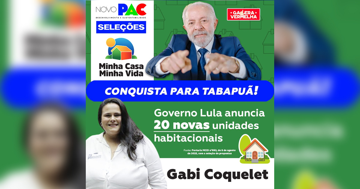 “O Governo Lula é um grande parceiro de Tabapuã! Além do recente anúncio dos investimentos do PAC Saúde para a cidade, a população também recebeu a grande notícia da seleção de 20 novas moradias para o município. Gratidão, presidente Lula!”, destaca a presidenta do PT Tabapuã, Gabi Coquelet.