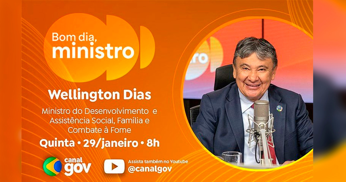 O ministro do Desenvolvimento e Assistência Social, Família e Combate à Fome, Wellington Dias, é o convidado do programa Bom Dia, Ministro nesta quinta-feira (29/1) de janeiro. Durante a entrevista com rádios e portais de notícias de várias regiões do país, a partir das 8h, ele abordará a chegada do Programa Gás do Povo em todas as capitais do Brasil e assuntos de destaque da pasta.