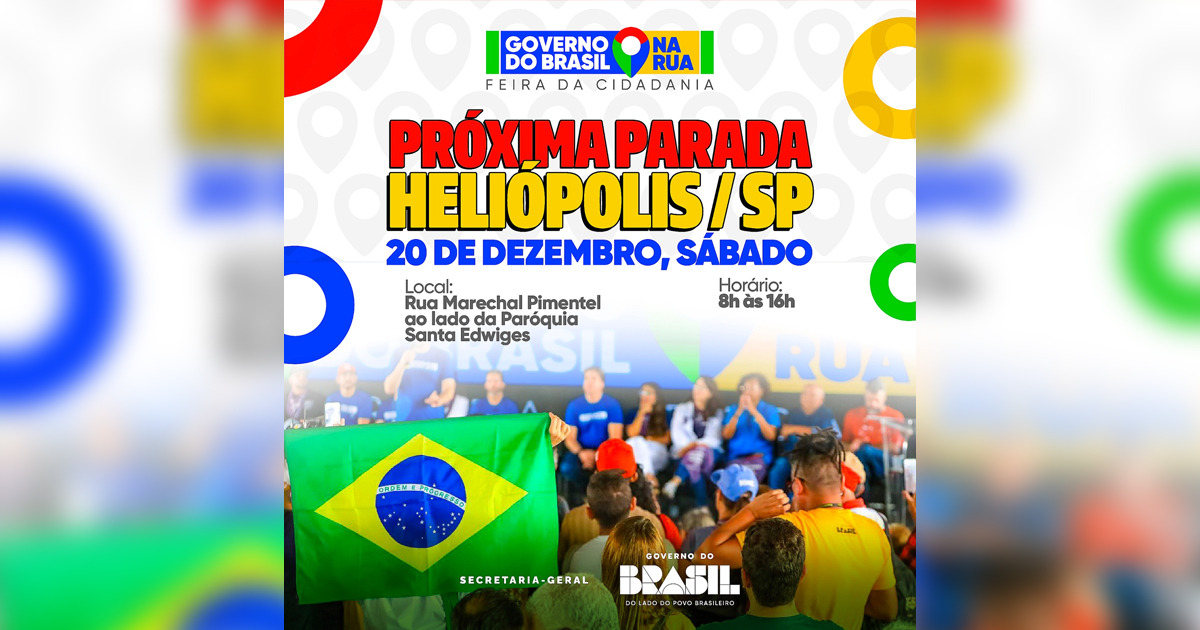 No próximo sábado, 20 de dezembro, o Governo do Brasil na Rua chega à cidade de São Paulo (SP). A Feira da Cidadania vai levar atendimentos odontológicos e muitos outros serviços aos moradores da comunidade de Heliópolis, na Zona Sul da capital paulista. A previsão é de que o evento ainda seja realizado nas 27 capitais e outras três cidades do interior do Brasil.