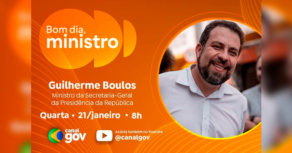 O ministro da Secretaria-Geral da Presidência da República, Guilherme Boulos, será o convidado do programa “Bom Dia, Ministro” nesta quarta-feira, 21 de janeiro. Durante a entrevista com rádios e portais de notícias de várias regiões do país, a partir das 8h, ele abordará o debate sobre o fim da escala 6×1 no Brasil. A mudança na jornada de trabalho é uma das prioridades do governo.