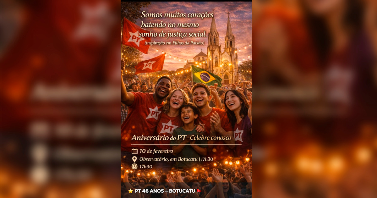 Veja o convite abaixo e para saber mais acesse o instagram oficial do PT em Botucatu: https://www.instagram.com/ptbotucatu/