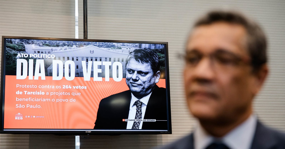 A Assembleia Legislativa do Estado de São Paulo recebeu, nesta segunda-feira (29), um ato político de repúdio aos vetos dados pelo Executivo a projetos de autoria parlamentar. A iniciativa do deputado Reis (PT) serviu como pressão para que o governador reduza o número de projetos vetados após aprovação na Casa Legislativa. Desde janeiro de 2023, foram 264 vetos, entre vetos totais e parciais.