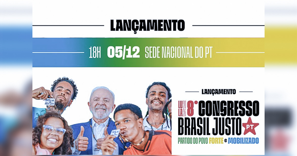 Lançamento será nesta sexta (6), na sede do partido em Brasília, e congresso será em abril de 2026. Evento debate futuro do partido e a reeleição de Lula