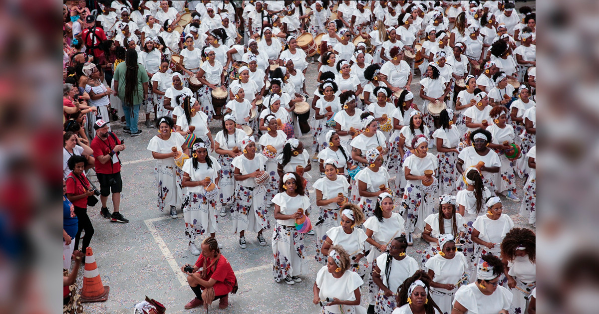 Ao longo do dia, bloquinhos de Carnaval animam o público, e o Bloco Afro Ilú Obá De Min marca presença ao finalizar seu cortejo no Galpão Cultural Elza Soares, reforçando a valorização da cultura afro-brasileira.