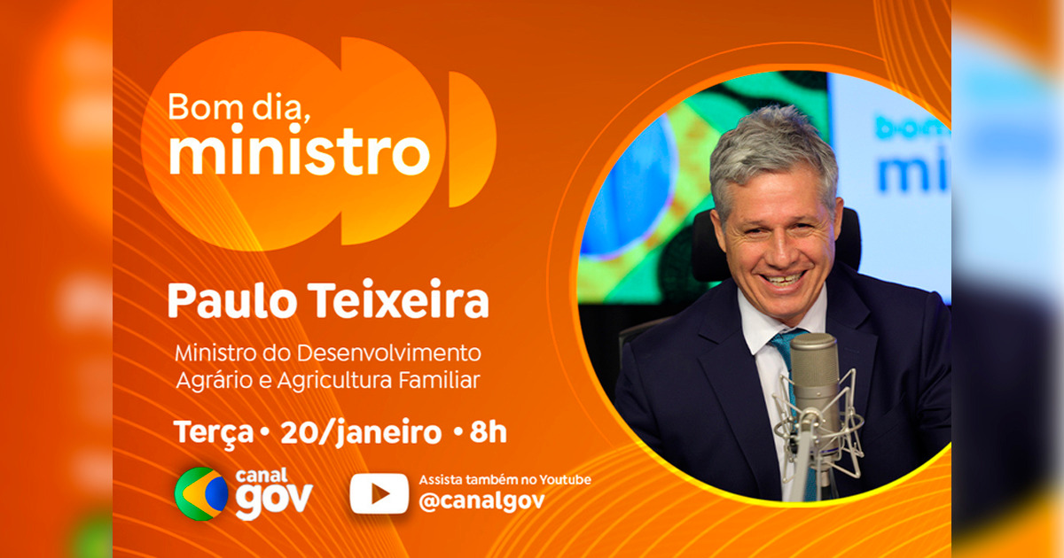 O ministro Paulo Teixeira (Desenvolvimento Agrário e Agricultura Familiar) será entrevistado por profissionais de imprensa – rádios e portais — de várias regiões do país no “Bom Dia, Ministro” desta terça-feira, 20 de janeiro. Durante o programa, a partir das 8h, vai abordar alguns dos principais temas da pasta, tendo o avanço da reforma agrária no Brasil e as possibilidades de ampliar o comércio com mercados europeus como mensagens principais.