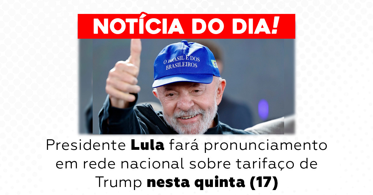O presidente Luiz Inácio Lula da Silva (PT) realizará um pronunciamento nesta quinta (17), às 20h30, sobre o tarifaço imposto pelo presidente dos Estados Unidos, Donald Trump, a produtos brasileiros vendidos no mercado americano. A fala do presidente será divulgada em rede nacional de rádio e televisão e terá 4 minutos e 50 segundos de duração.