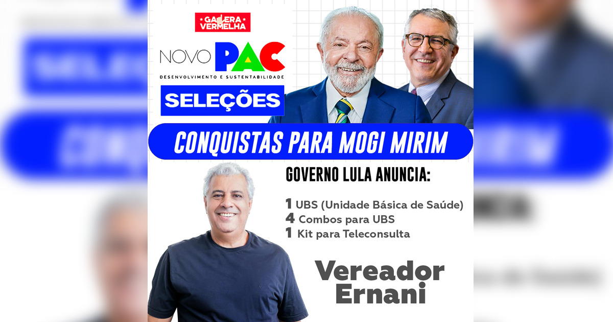 O vereador de Mogi Mirim (SP), Ernani Gragnanello (PT), destacou no mês de julho, grandes conquistas para a população, através do Novo PAC Saúde, fruto da parceria do Governo Lula e articulação do mandato com a gestão municipal e com o ministro da Saúde, Alexandre Padilha.