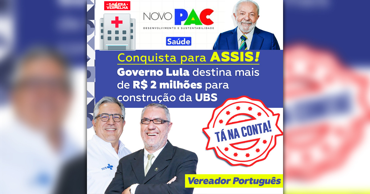 Vereador Português celebra grande conquista para Assis: “Governo Lula libera mais de R$ 2 milhões para a construção da UBS”