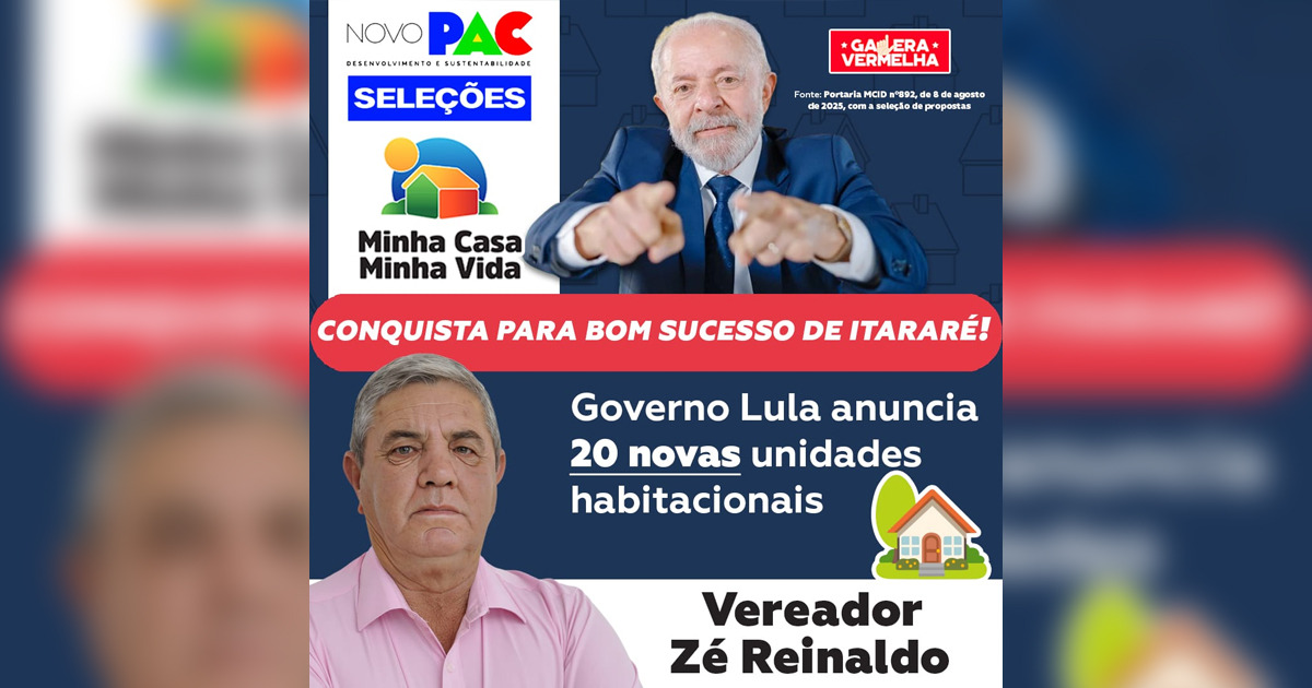 O Governo Lula, por meio do Ministério das Cidades, divulgou as propostas selecionadas para contratação do Programa Minha Casa, Minha Vida Sub50, na modalidade para municípios com menos de 50 mil habitantes, através do Novo PAC Seleções 2025. A cidade de Bom Sucesso de Itararé será contemplada com 20 unidades habitacionais.
